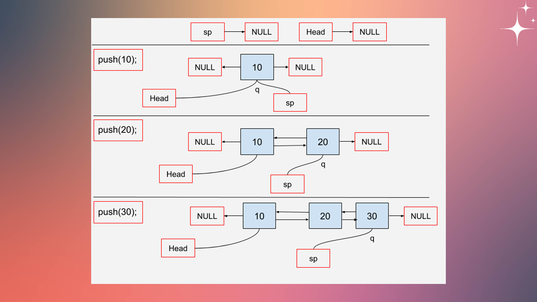 namespace ciftli_Stack { class Program { static Ciftli sp; static Ciftli Head; class Ciftli { public int data; public Ciftli next; public Ciftli prev; } static public void push(int data) { Ciftli q = new Ciftli(); q.data = data; q.next = null; q.prev = sp; if (sp == null) { Head = q; sp = q; } else { sp.next = q; sp = q; } } static public int pop() { int data = sp.data; sp = sp.prev; return data; } static void Main(string[] args) { push(10); push(20); push(30); for (int i = 0; i < 3; i++) { Console.WriteLine(pop()); } } } }