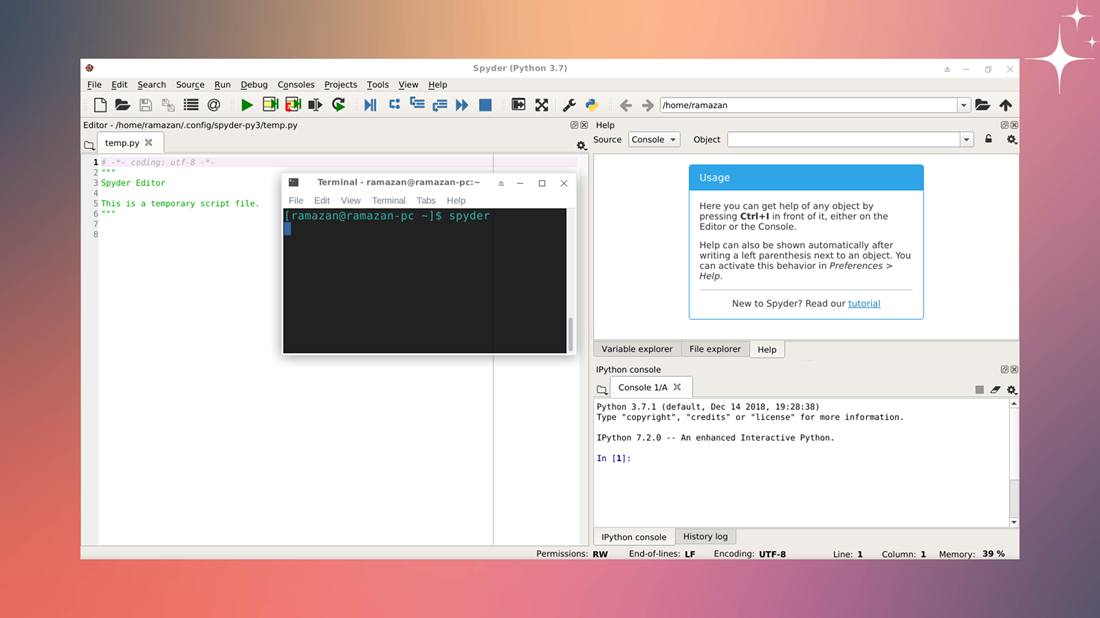 Ardından bilgisayarınızı yeniden başlatınız. Jupyter Notebook ve Spyder’ı açmaya çalışalım. Uçbirim üzerinde spyder yazalım.