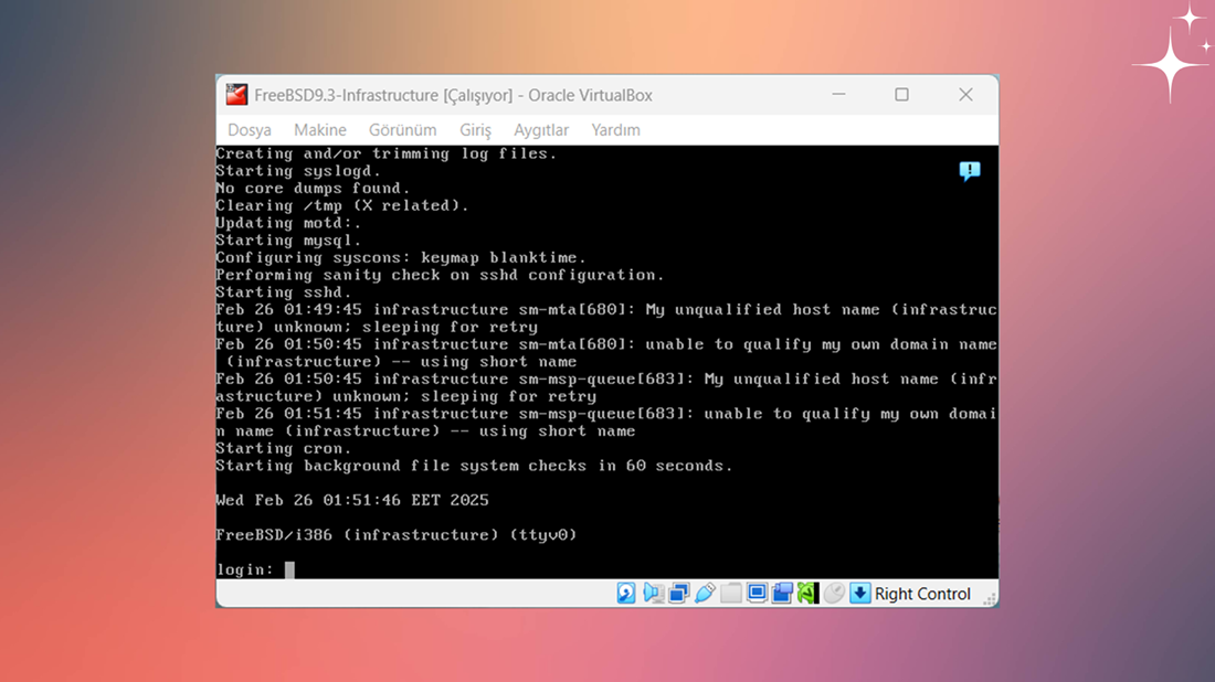 FreeBSD Server’ımız oldukça yavaş açılıyor. Çıktılarımızı gözlemlediğimiz zaman şu şekilde çıktılar olduğunu görüyoruz.