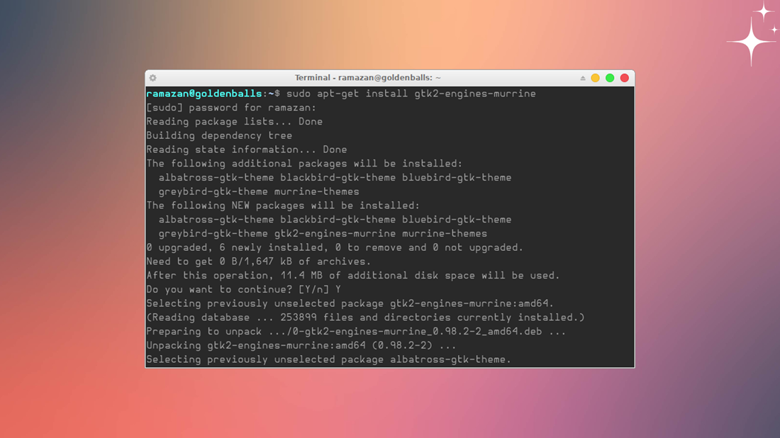 Aşağıdaki komutu kullanarak gtk2-engines-murrine paketini sistemimize kuralım.